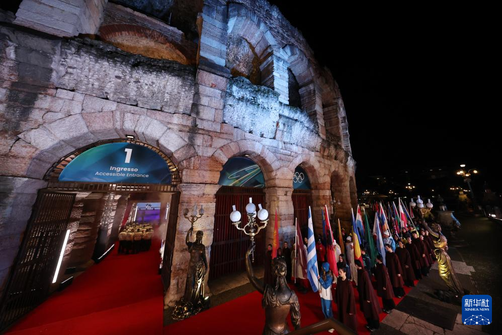 这是2月22日拍摄的闭幕式前的维罗纳奥林匹克竞技场外景。