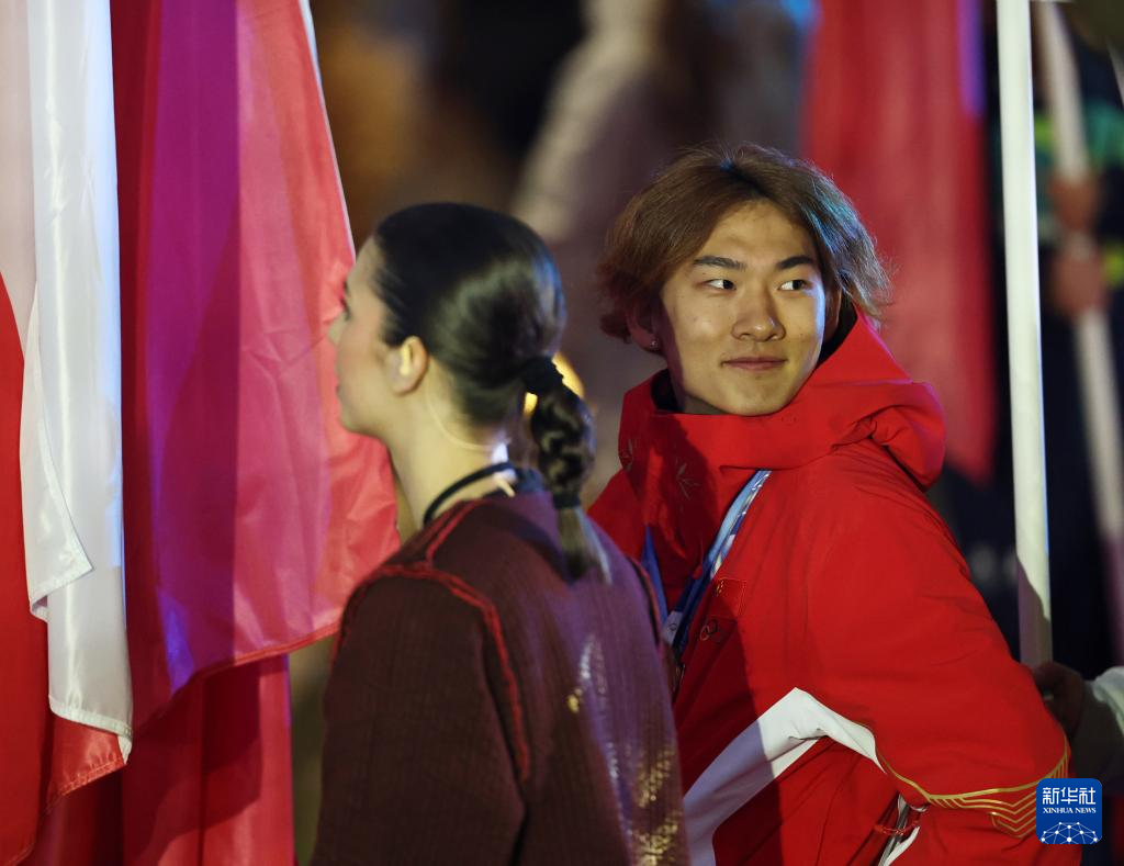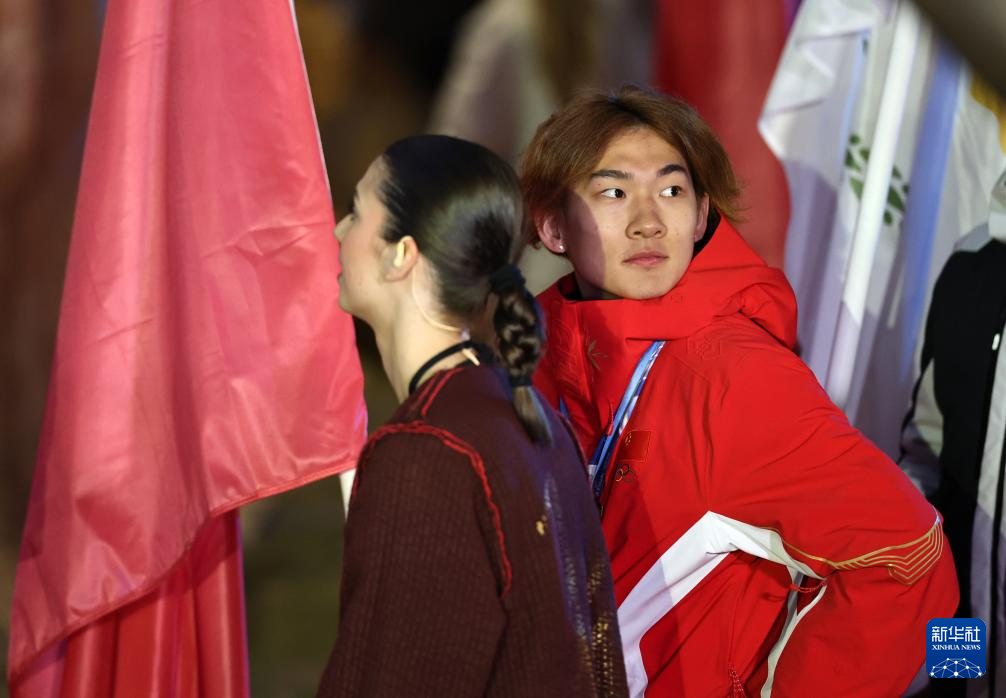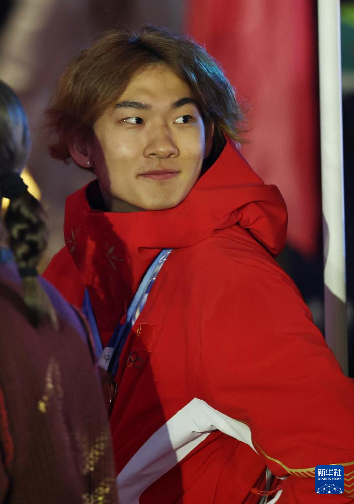 2月22日,中国体育代表团旗手苏翊鸣准备入场。