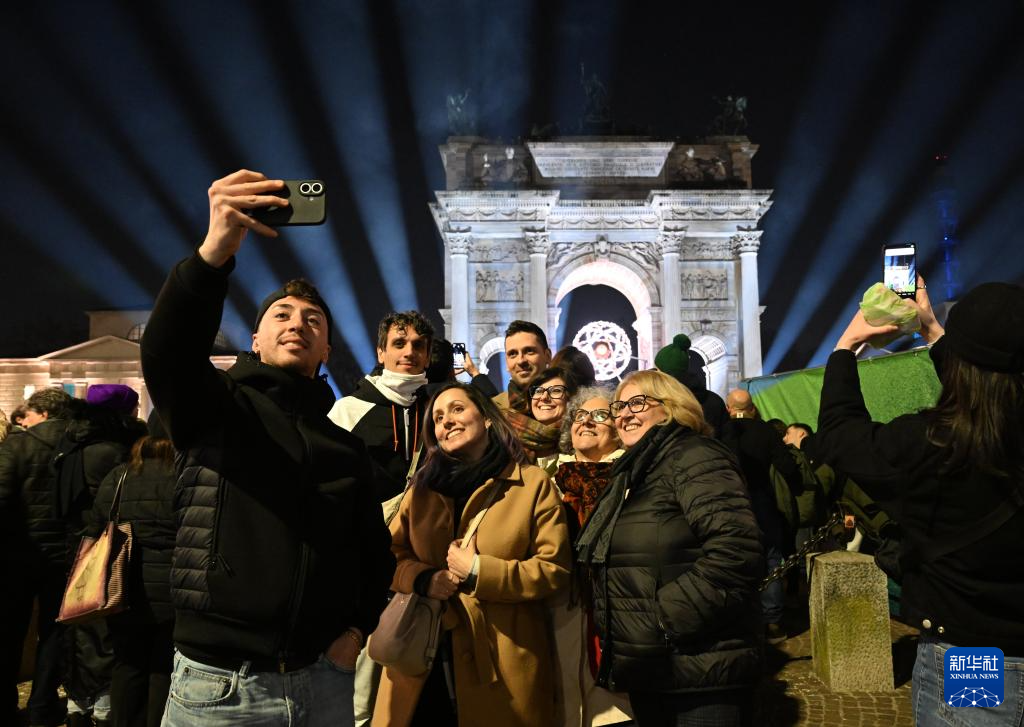 2月22日,在意大利米兰,人们和熄灭前的主火炬合影。