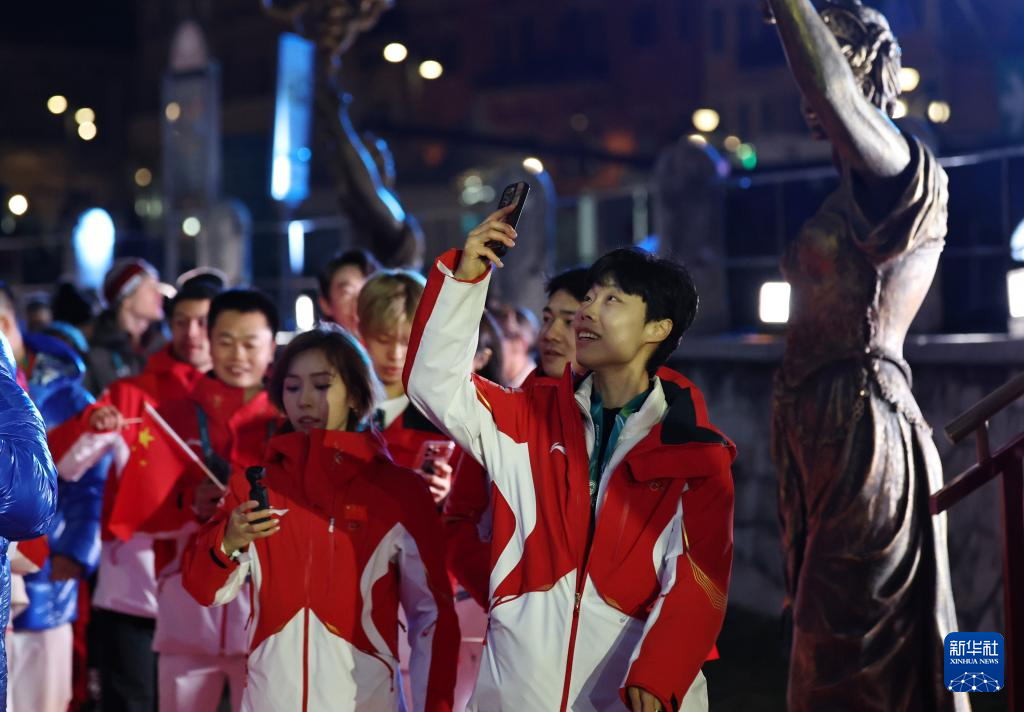 2月22日,中国体育代表团成员在闭幕式上。
