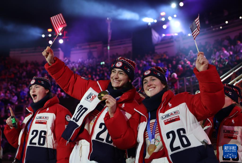2月22日,美国体育代表团在闭幕式上。