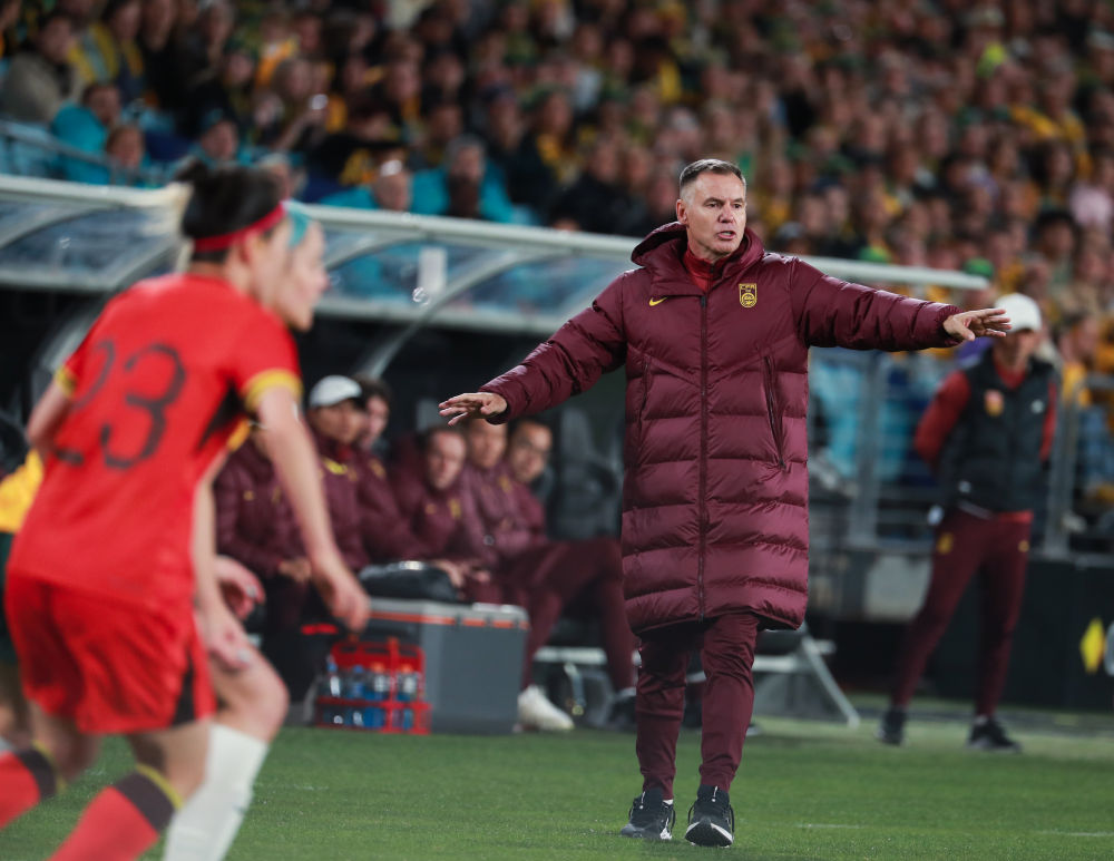 2024年6月3日,中国女足主教练米利西奇在场边指挥。新华社记者 马平 摄