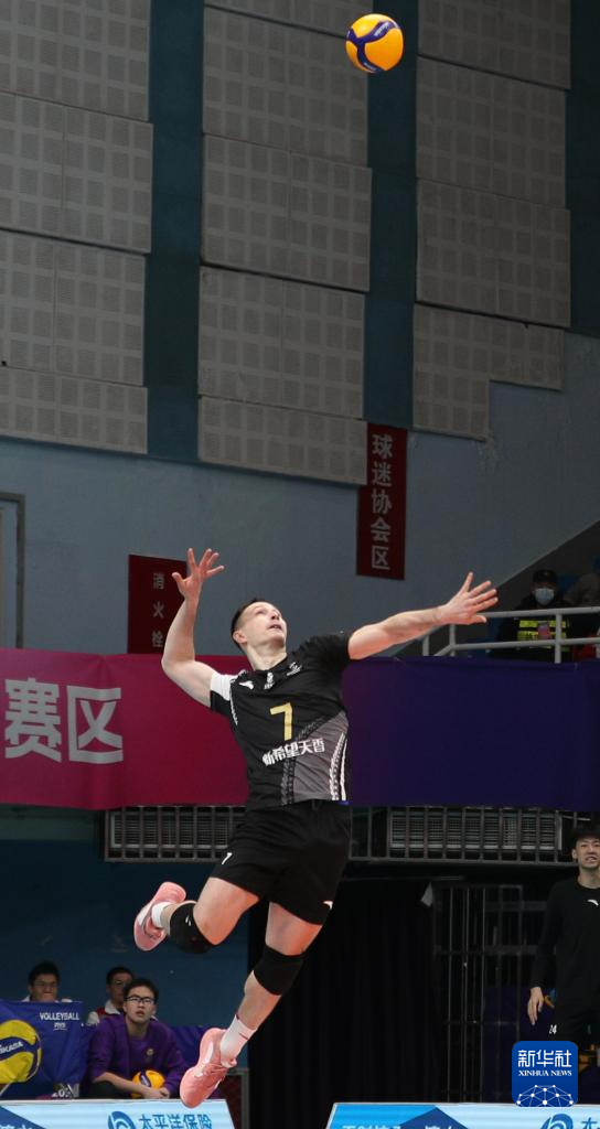 3月5日,保定沃隶队球员辛尼察在比赛中发球。