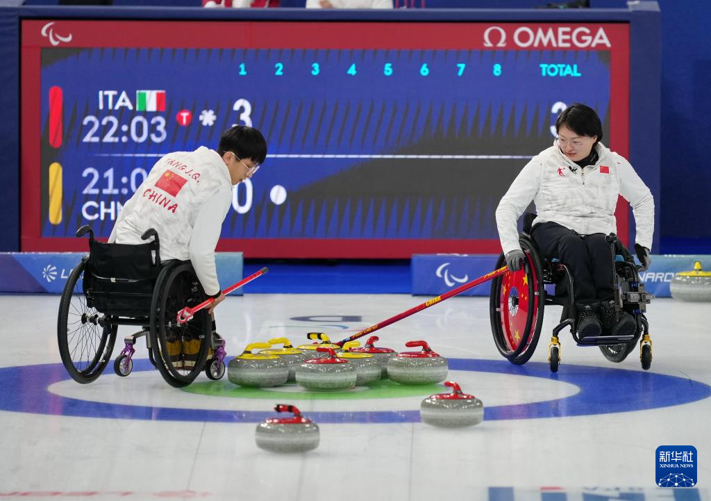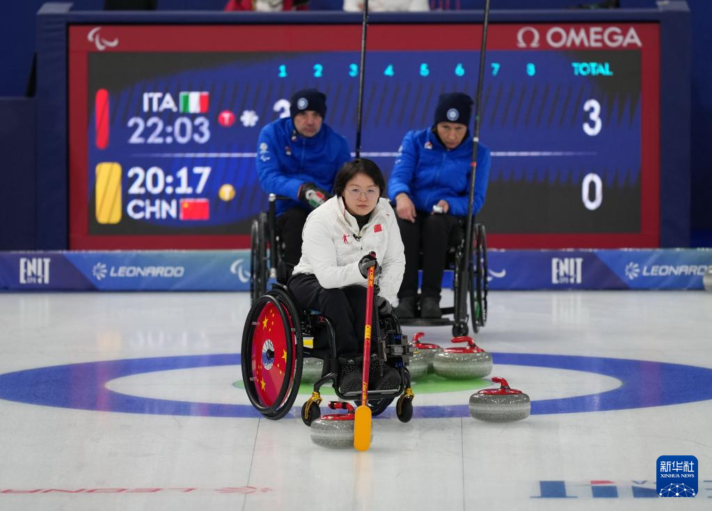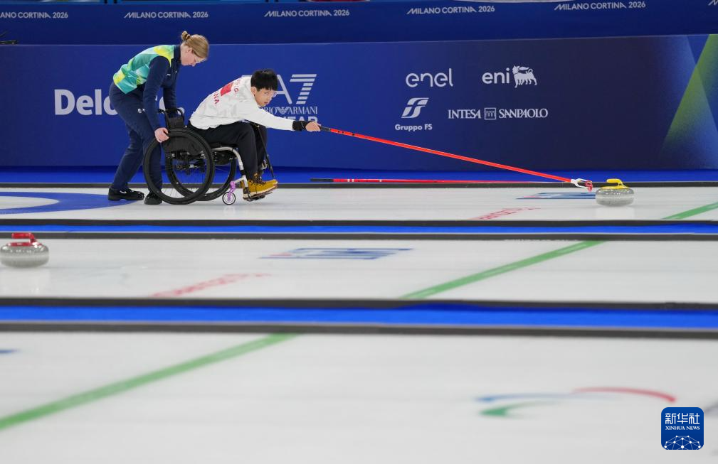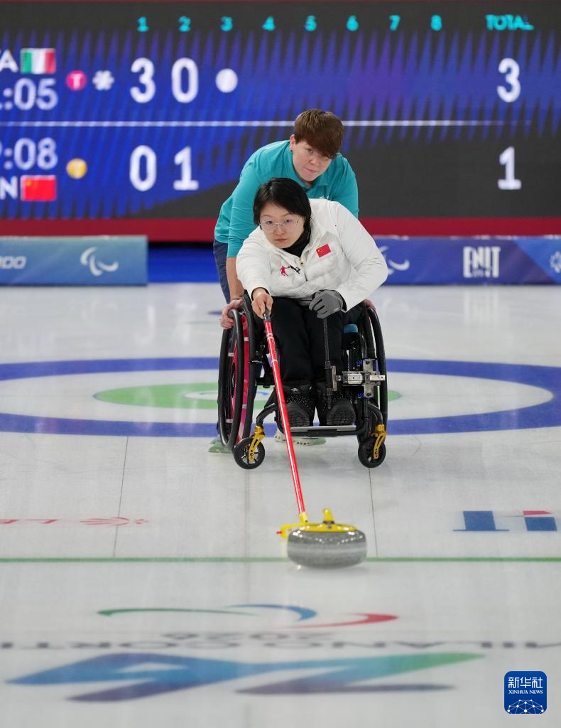 当地时间3月5日,在意大利科尔蒂纳举行的米兰-科尔蒂纳冬残奥会轮椅冰壶混双循环赛中,中国队8比7战胜意大利队。