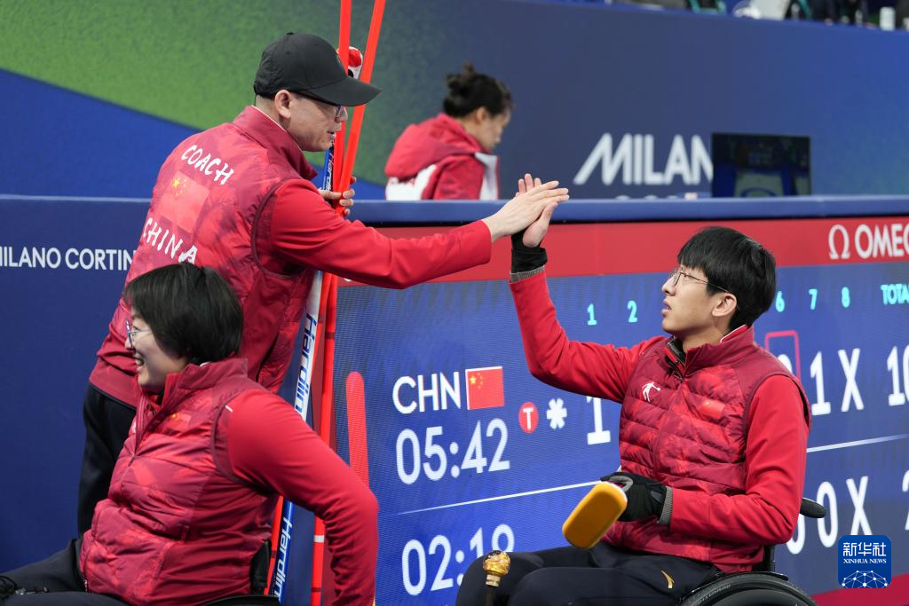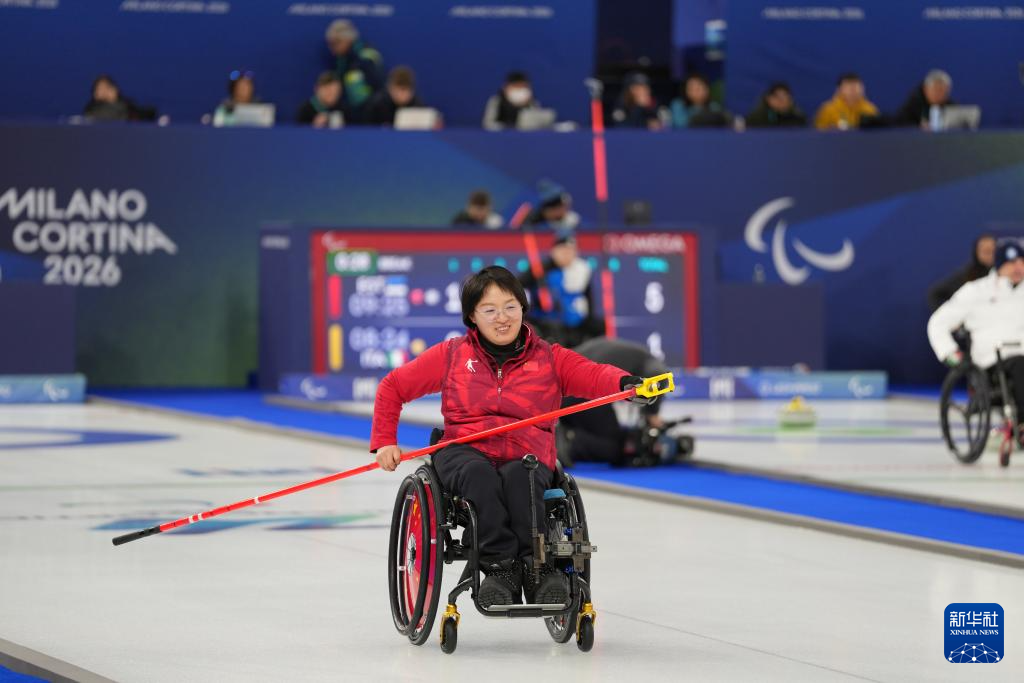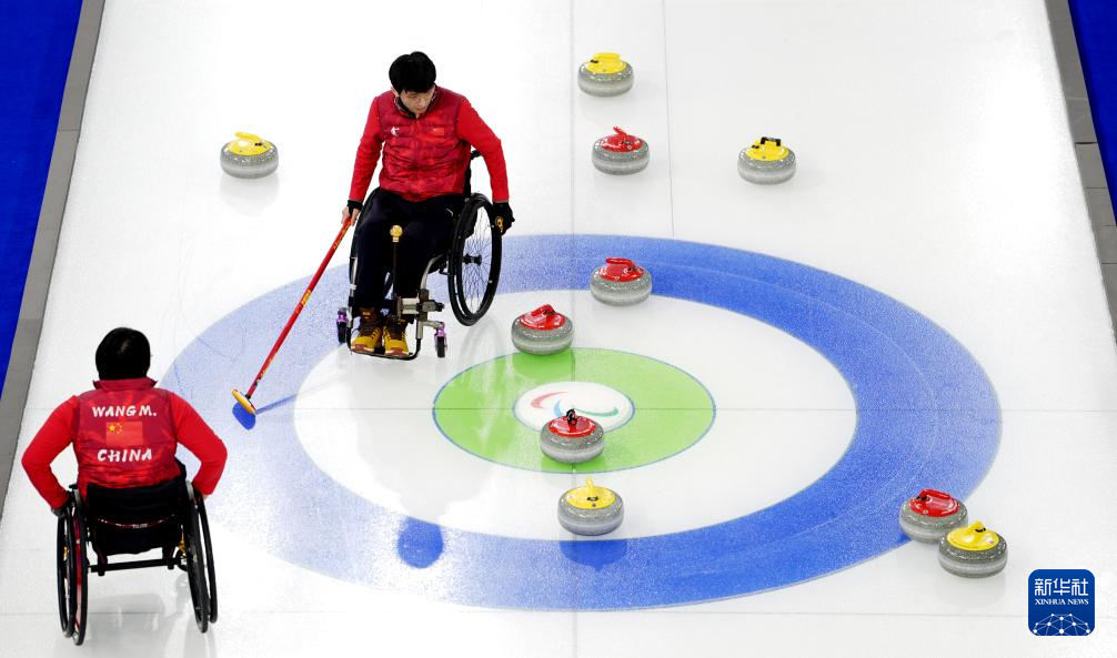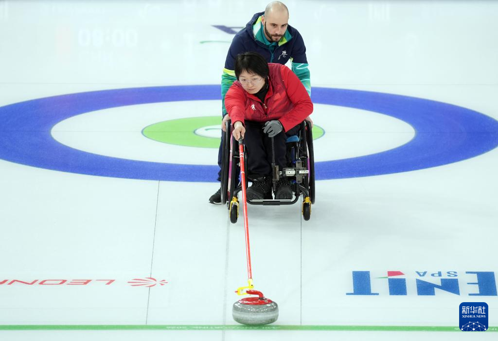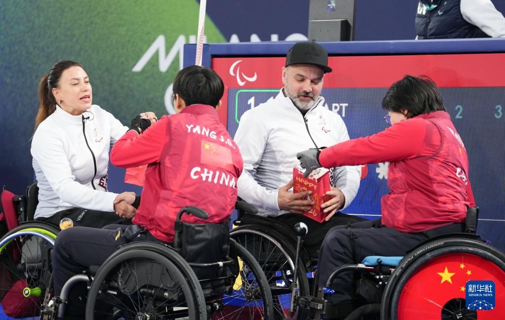 当地时间3月5日,在意大利科尔蒂纳举行的米兰-科尔蒂纳冬残奥会轮椅冰壶混双循环赛中,中国队10比2战胜拉脱维亚队。