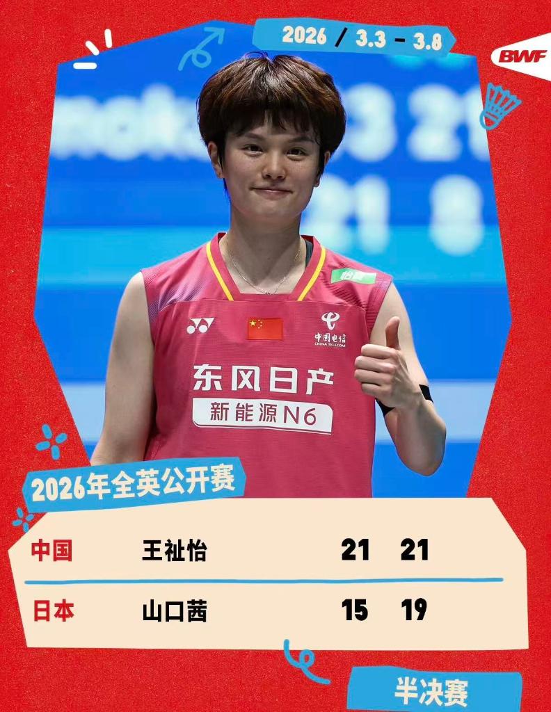 新华社北京3月8日电 当地时间7日,2026年全英羽毛球公开赛在伯明翰结束半决赛争夺。中国队在女单、女双两个项目中各锁定一个决赛席位。
