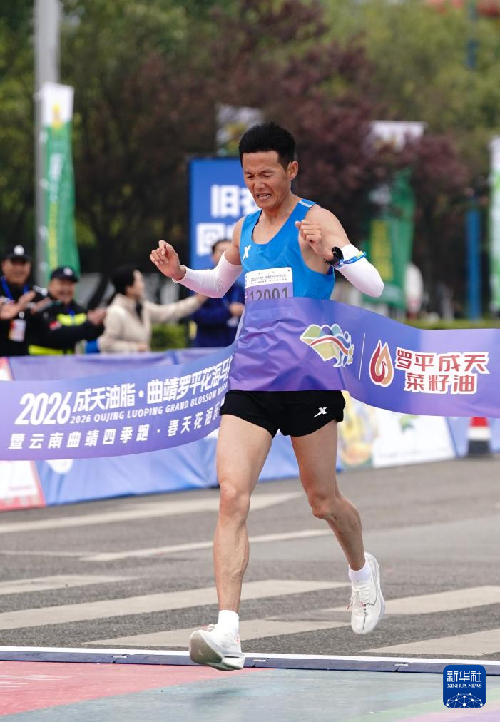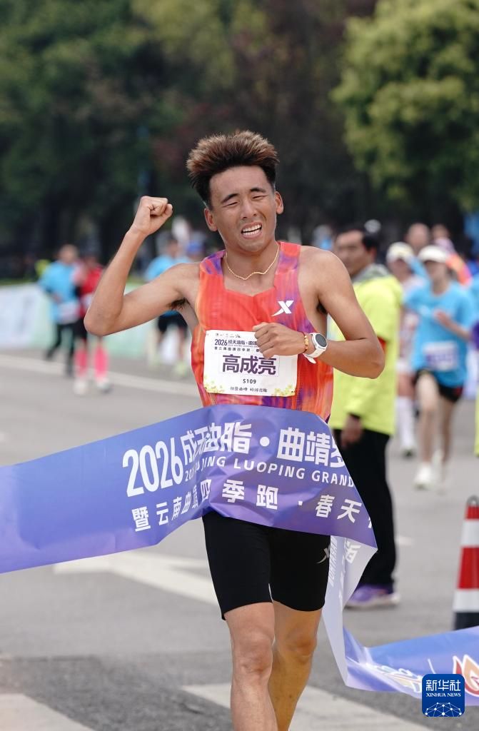 3月15日,高成亮在比赛中冲线。他最终获得男子马拉松冠军。
