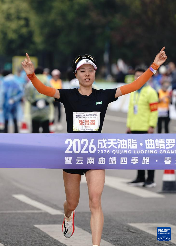 3月15日,张景霞在比赛中冲线。她最终获得女子马拉松冠军。