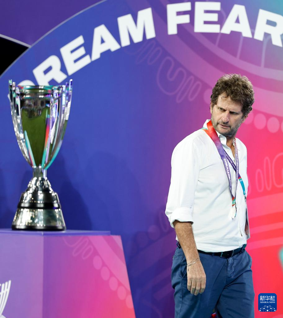 3月21日,澳大利亚队主教练蒙特穆罗在颁奖仪式上看向冠军奖杯。