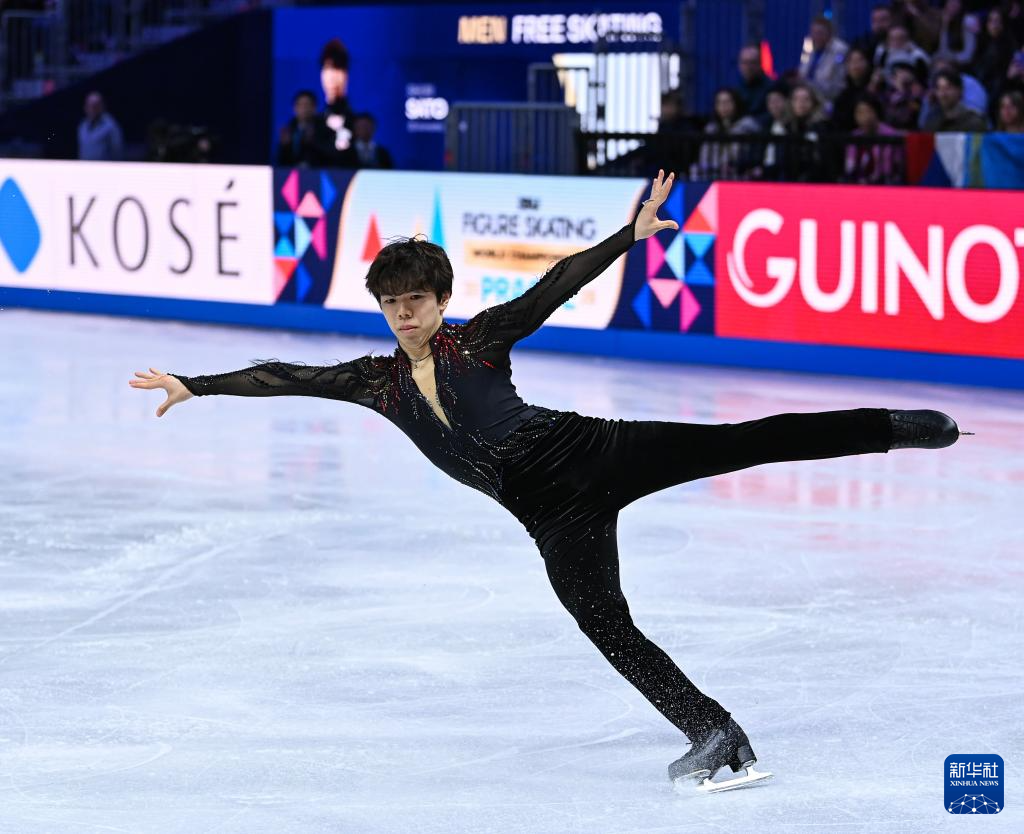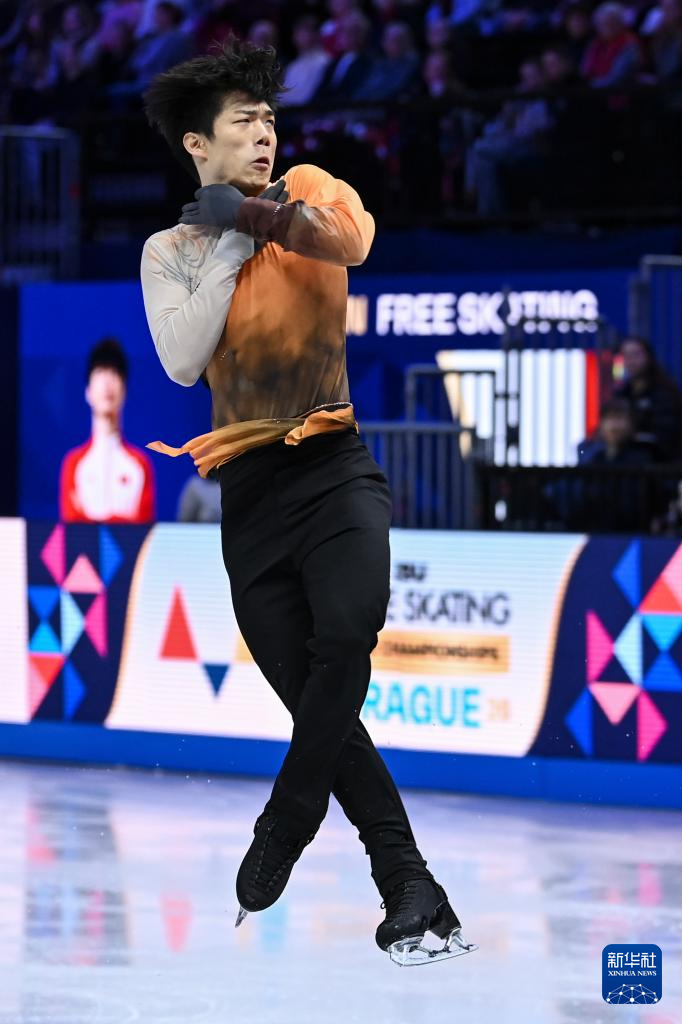 3月28日,日本选手佐藤骏在比赛中。他最终获得男子单人滑季军。
