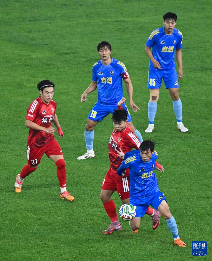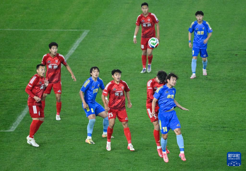 4月11日,2026江苏省城市足球联赛(简称“苏超”)揭幕战在常州奥体中心体育场举行,对阵双方为常州队和南通队。