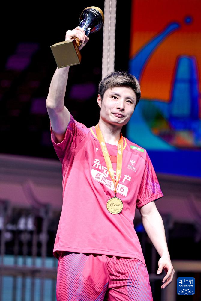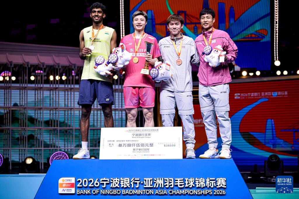 4月12日,在浙江宁波举行的2026年亚洲羽毛球锦标赛男子单打决赛中,中国选手石宇奇2比0战胜印度选手阿尤什,夺得冠军。