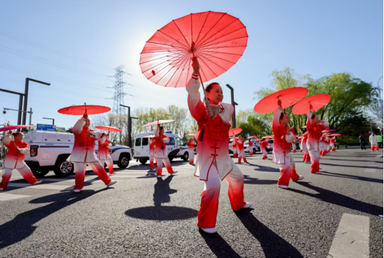 2026中国田径协会10公里精英赛(北京·海淀站)赛道旁的文艺表演。(主办方供图)