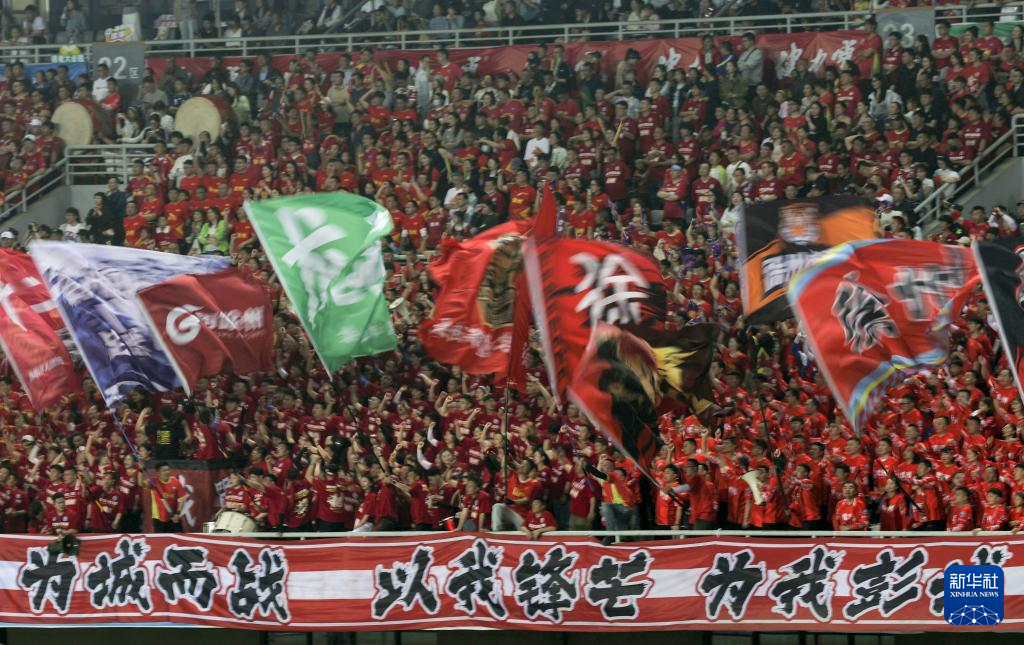 4月18日,徐州队球迷在现场为球队加油助威。