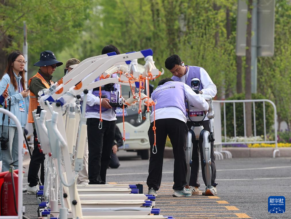 4月19日,人形机器人选手们准备出发。