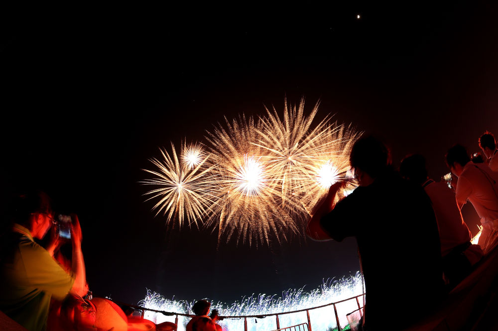 ↑这是开幕式现场的焰火表演。