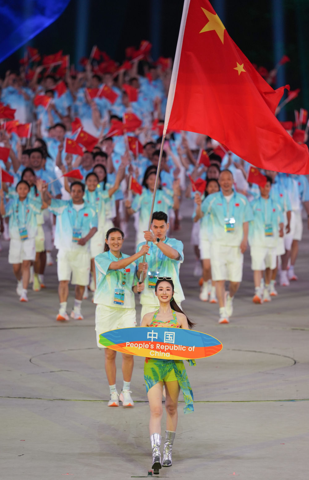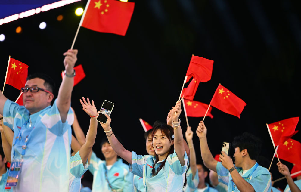 ↑中国体育代表团在开幕式上入场。