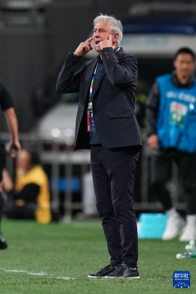 4月21日,成都蓉城队主教练阿洛伊西在比赛中指挥。