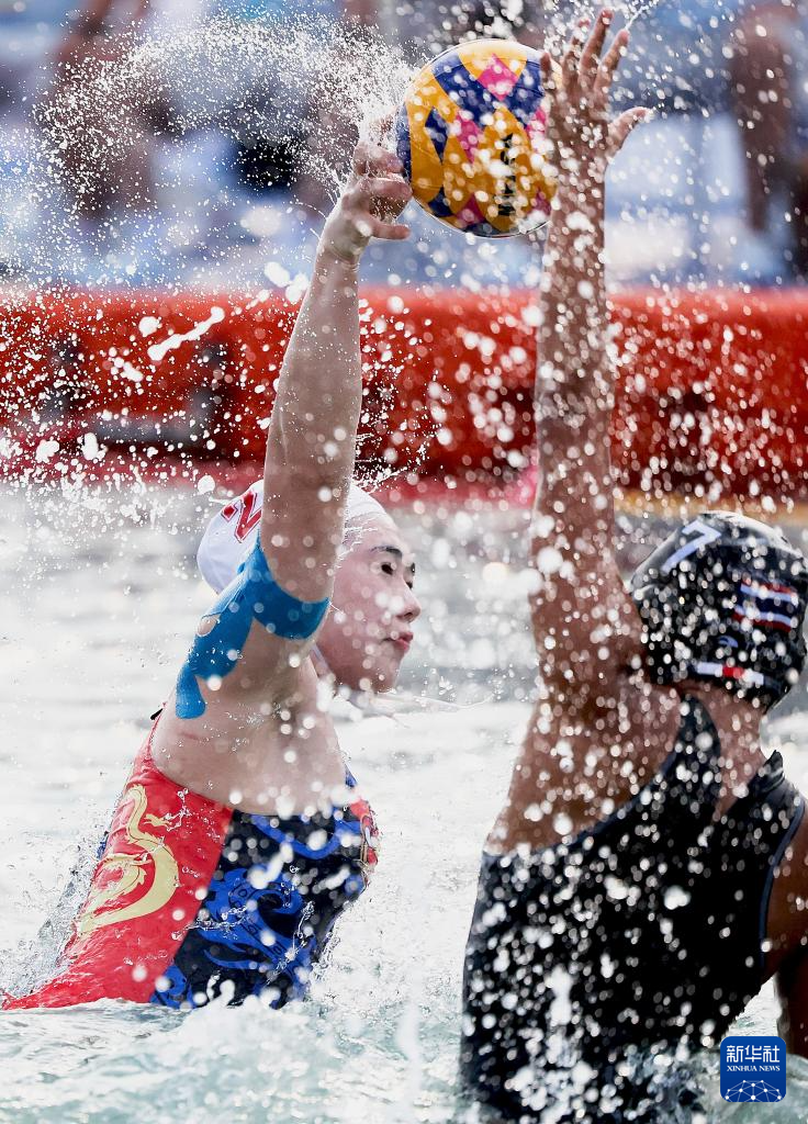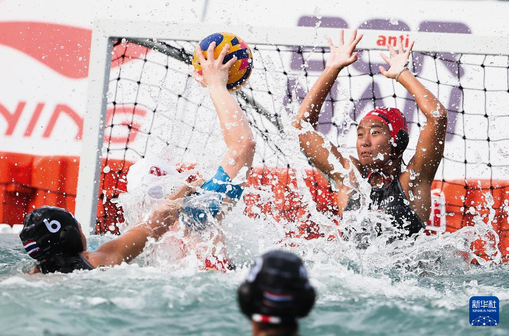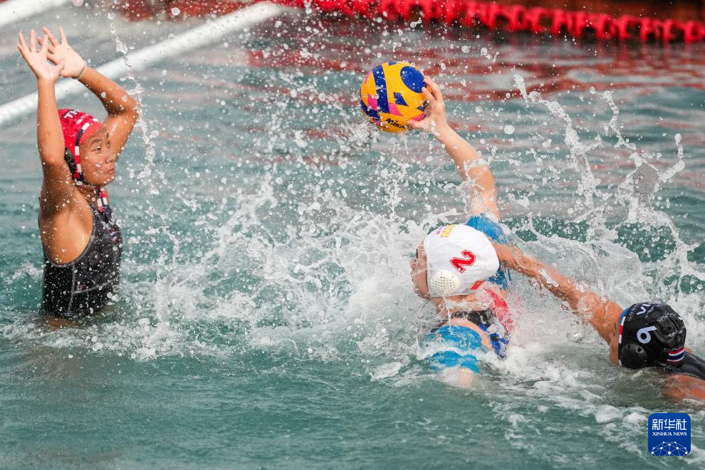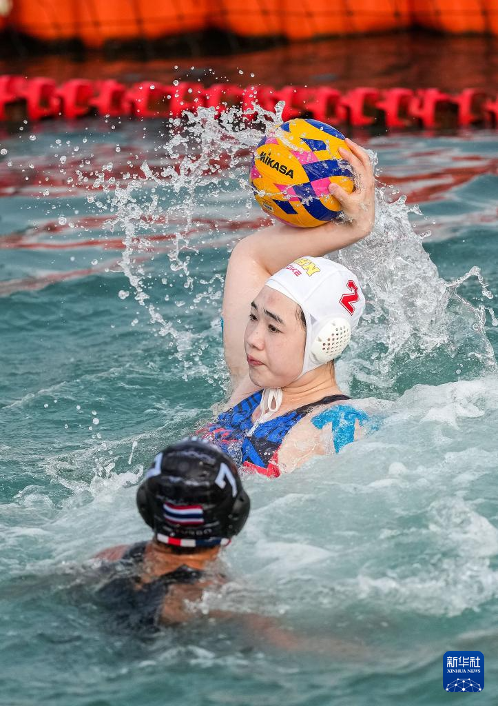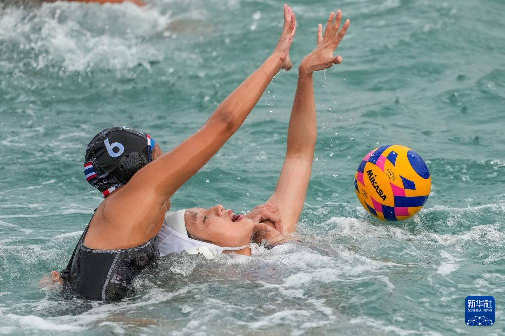 4月23日,在海南三亚举行的第六届亚洲沙滩运动会女子水球单循环决赛中, 中国队3比0战胜泰国队。