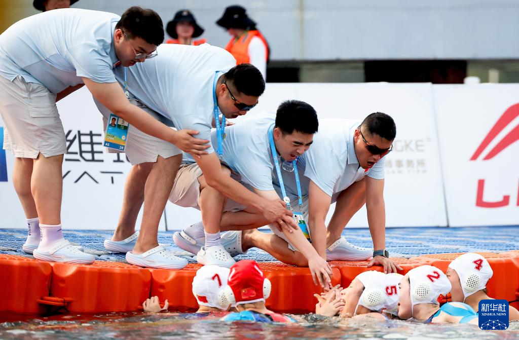 4月23日,双方球员在露天泳池比赛中。