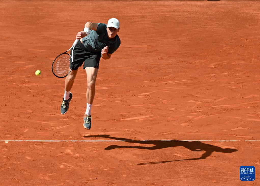 4月24日,意大利选手辛纳在比赛中回球。