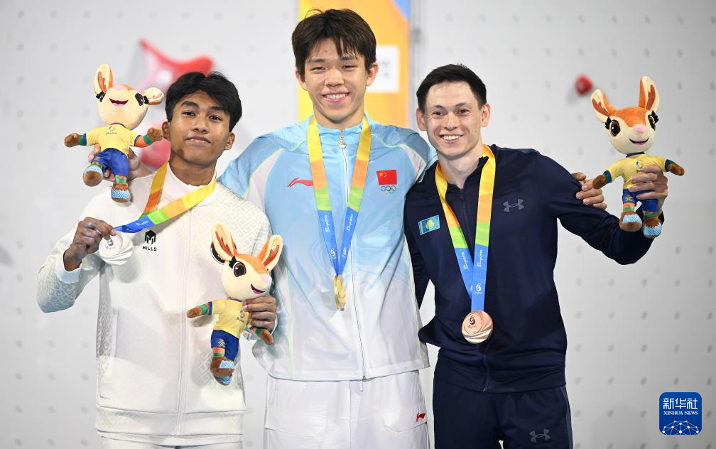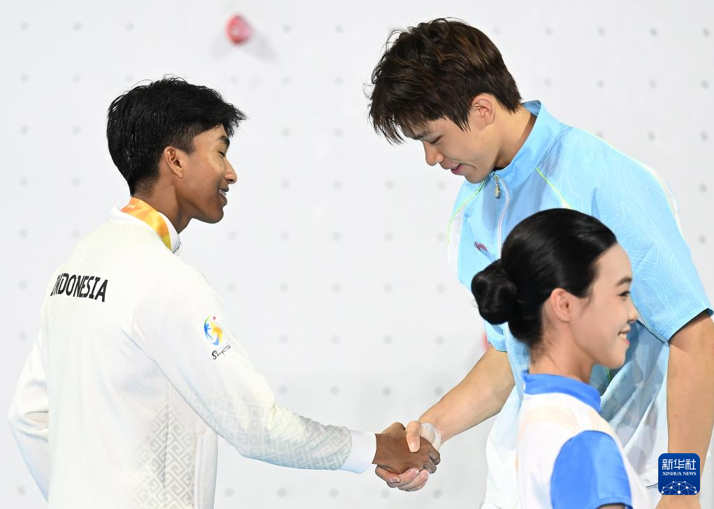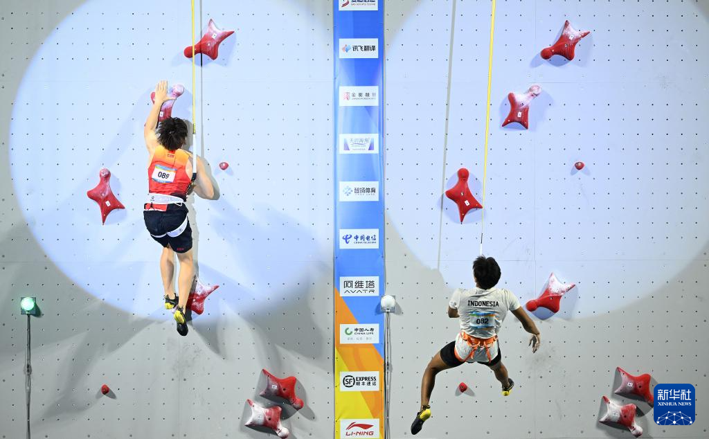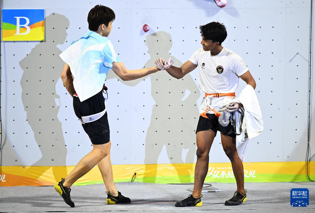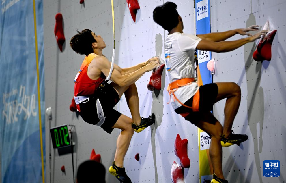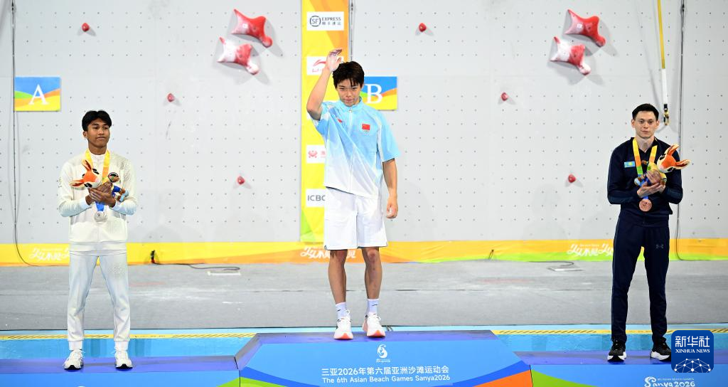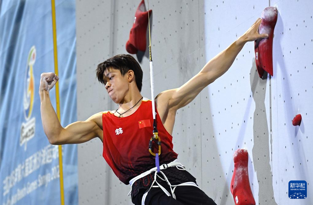 4月28日,在海南三亚举行的第六届亚洲沙滩运动会攀岩速度男子决赛中,中国选手赵一程战胜印度尼西亚选手安塔夏菲·罗比·阿尔·希尔米,获得冠军。