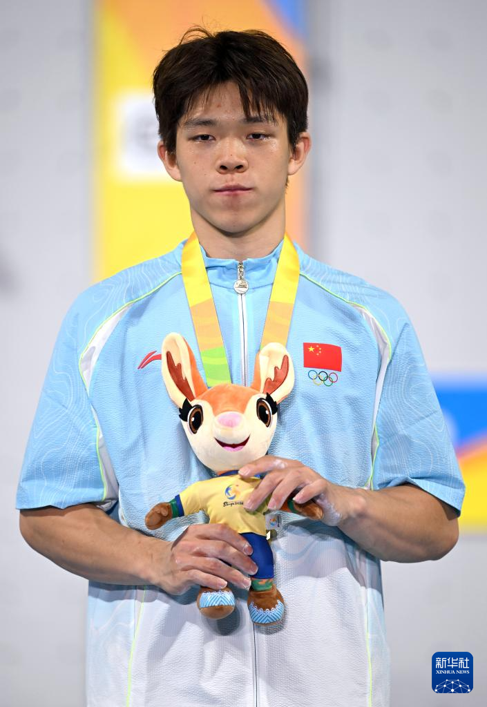4月28日,冠军中国选手赵一程在颁奖仪式上。
