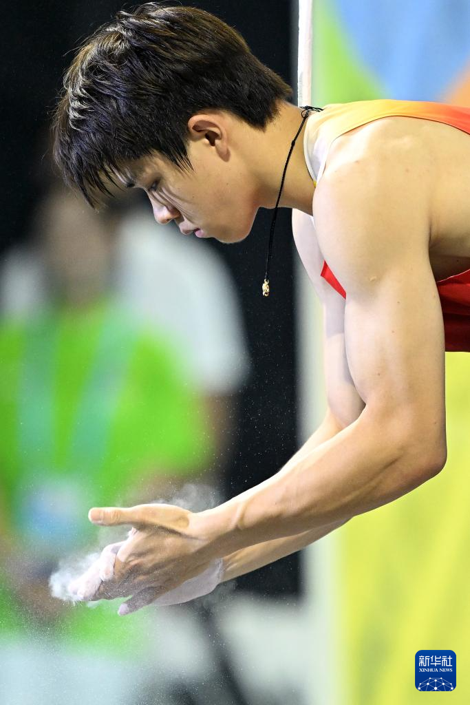 4月28日,中国选手赵一程在比赛前。