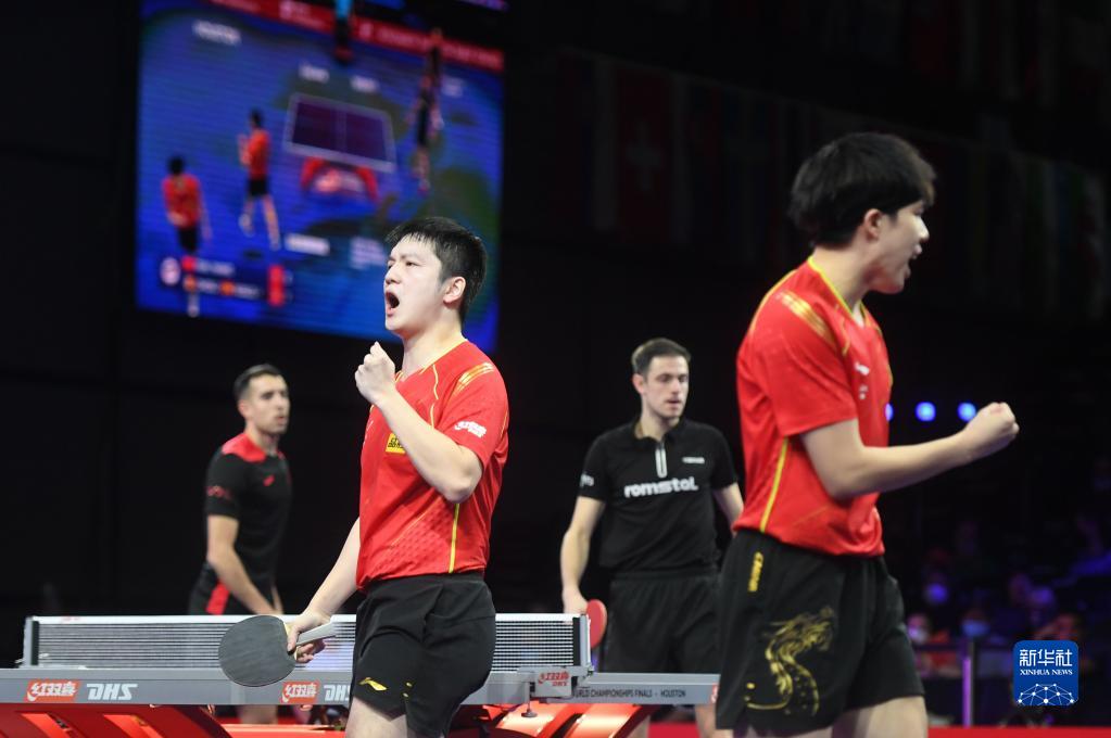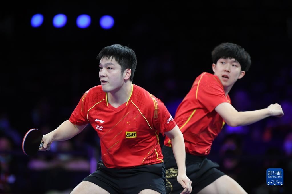 11月26日,樊振东/王楚钦(左)在比赛中。