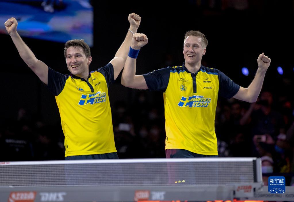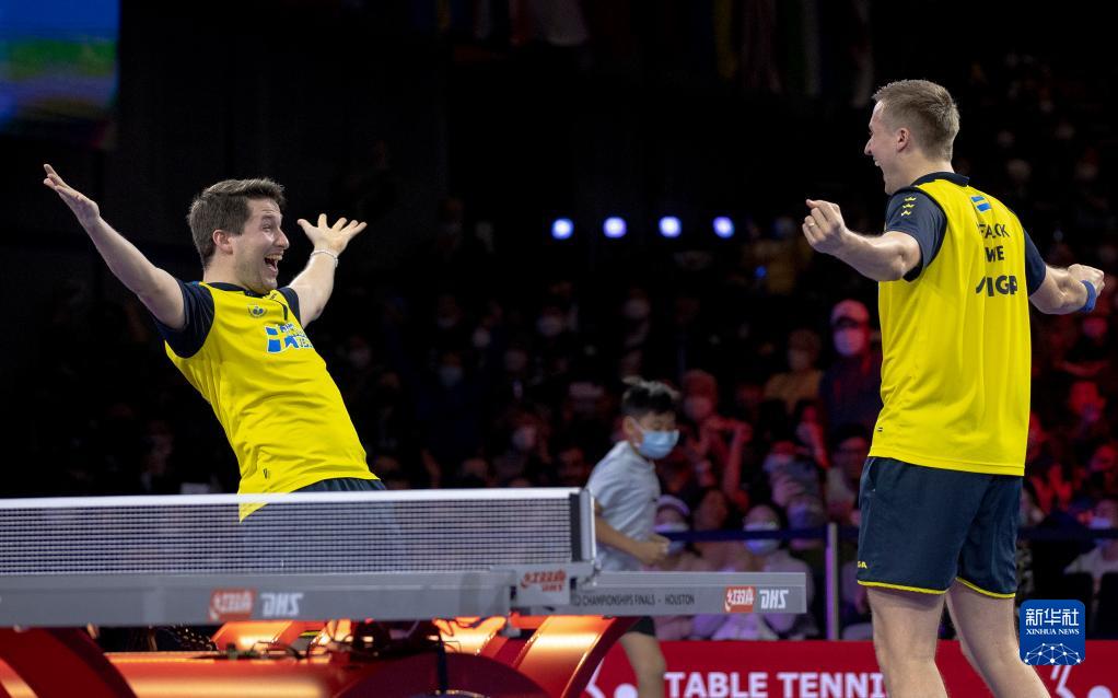 当日,在美国休斯敦进行的2021世界乒乓球锦标赛男子双打决赛中,瑞典组合卡尔松/法尔克以3比1战胜韩国组合张禹珍/林钟勋,夺得冠军。
