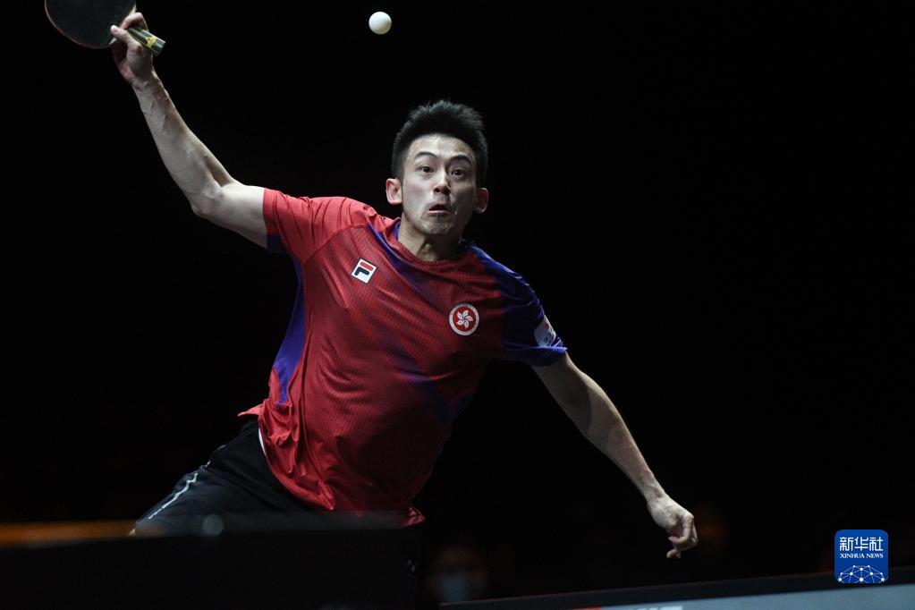 12月5日,中国香港选手黄镇廷在比赛中回球。