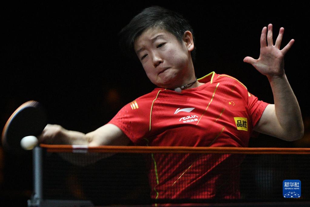 12月6日,孙颖莎在比赛中回球。