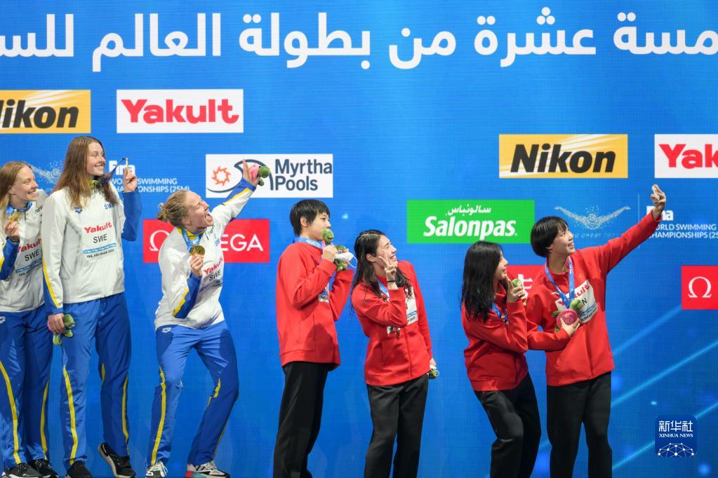 当日,在阿联酋阿布扎比举行的国际泳联世界短池游泳锦标赛女子4×100米混合泳接力决赛中,由彭旭玮、唐钱婷、张雨霏和程玉洁组成的中国队以3分47秒41打破亚洲纪录并获得铜牌。