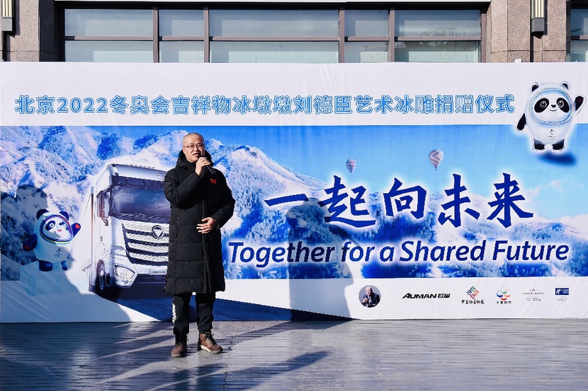 1月8日,黑龙江艺术家“刘德臣艺术冰雕作品 2022 北京冬奥会吉祥物冰墩墩——捐赠仪式”在京举行。