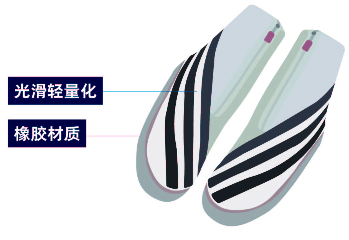 雪橇比赛用鞋的设计符合空气动力学,重量非常轻,大约只有110克。鞋身表面光滑,鞋底采用防滑的橡胶材质,这样的设计有利于提高运动员在比赛中的操控性。