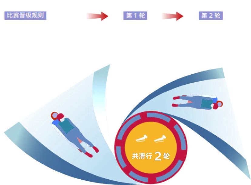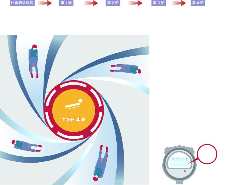 单人比赛共进行4次滑行,4次滑行的时间相加后,用时最短的选手获得胜利。