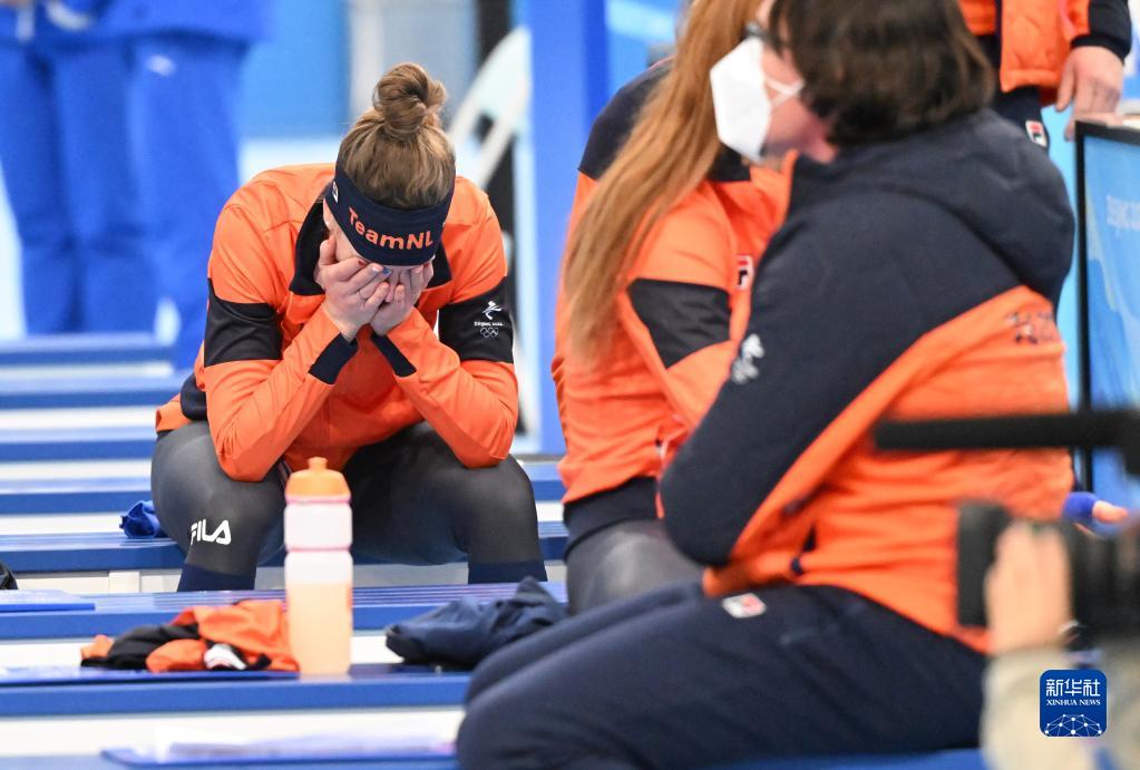 2月7日,荷兰选手伊琳·维斯特(左一)等待比赛结果。