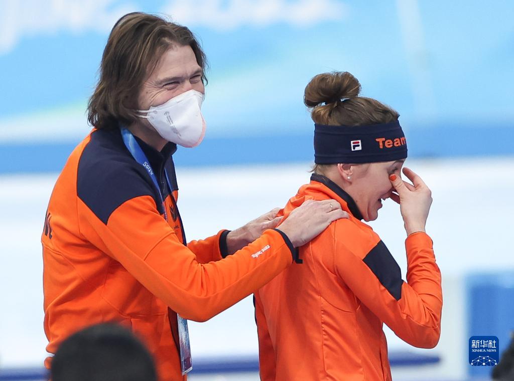 2月7日,荷兰选手伊琳·维斯特(右)在赛后激动落泪。