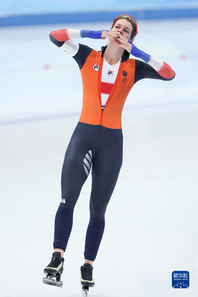 当日,在国家速滑馆“冰丝带”举行的北京2022年冬奥会速度滑冰女子1500米决赛中,荷兰选手伊琳·维斯特夺得冠军。