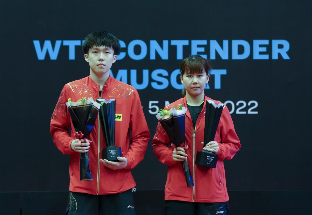 当日,在阿曼首都马斯喀特举行的2022年WTT挑战赛马斯喀特站混双决赛中,中国选手王楚钦/陈幸同以3比0战胜印度选手塔卡尔/卡马特,夺得冠军。