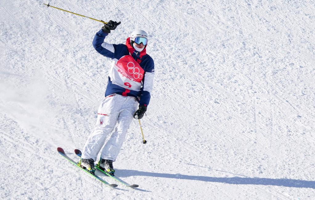 2月16日,美国选手尼古拉斯·戈珀在北京冬奥会自由式滑雪男子坡面障碍技巧决赛中。新华社记者王昊飞摄