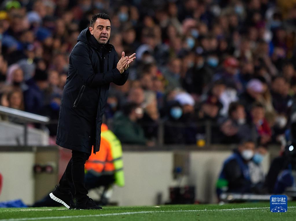 4月3日,巴塞罗那队教练哈维在比赛中指挥。