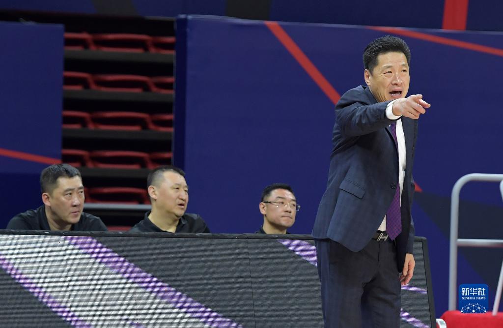 4月13日,上海久事队主教练李春江(右一)在场边指挥。