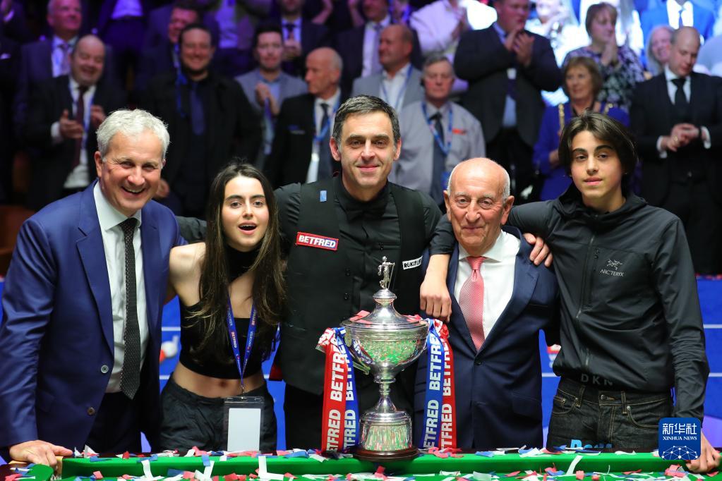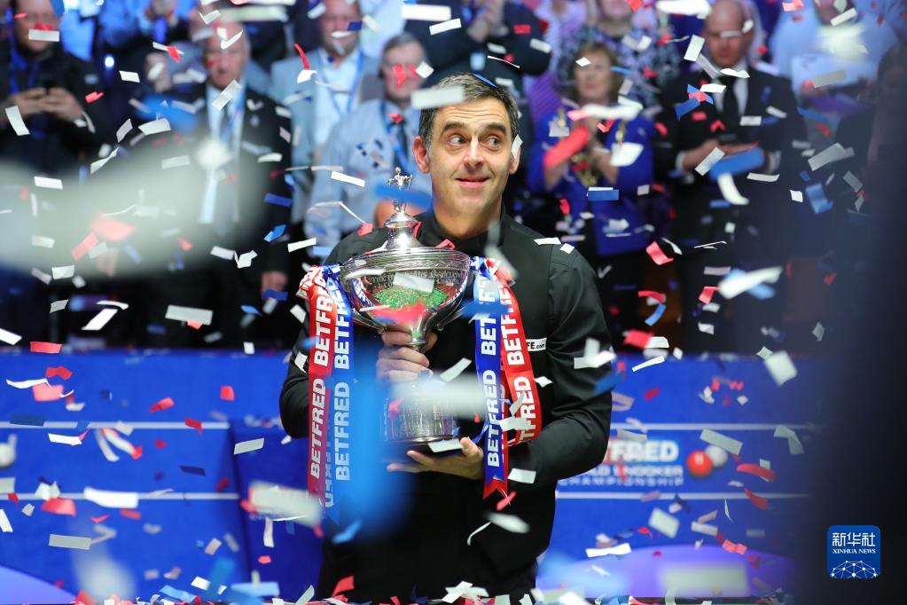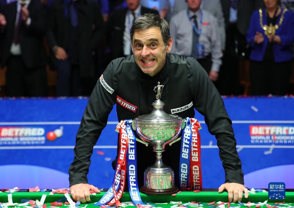 5月2日,英格兰选手奥沙利文在颁奖仪式上庆祝。