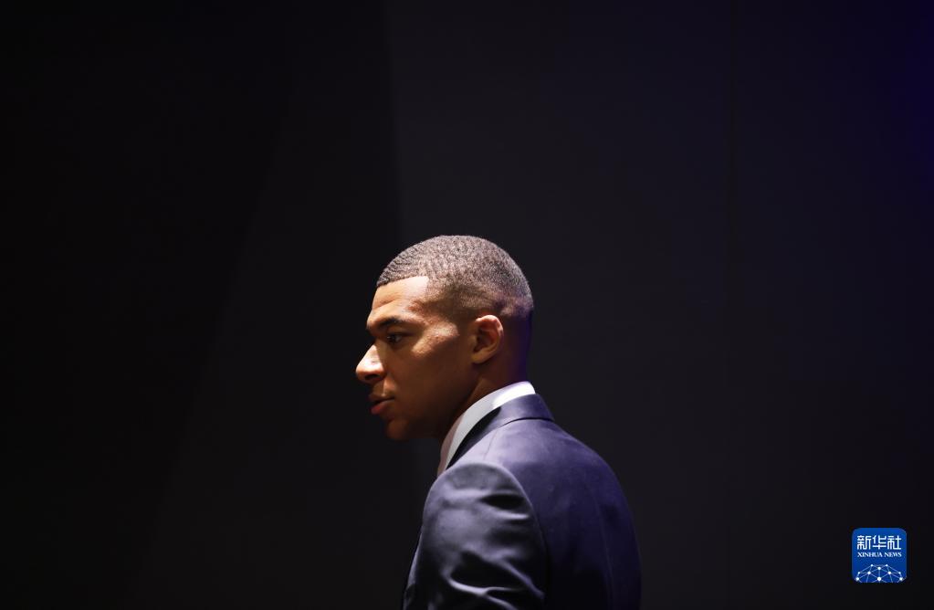 5月23日,在法国巴黎王子公园球场,姆巴佩抵达与巴黎圣日耳曼俱乐部续约的新闻发布会现场。新华社记者 高静 摄
