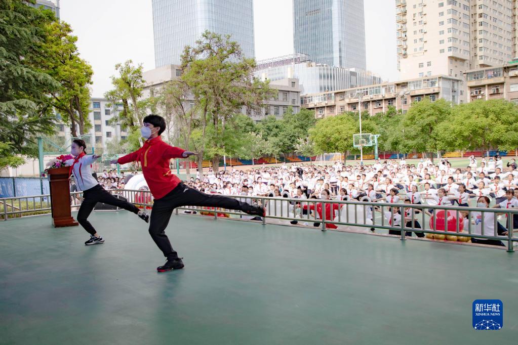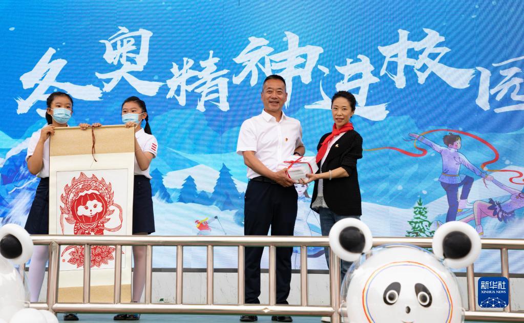 当日,“冬奥精神进校园”活动在甘肃省兰州市东郊学校举行,冬奥冠军申雪、赵宏博等冰雪健儿与学生们互动交流,推广花样滑冰广播操,传递北京冬奥精神。