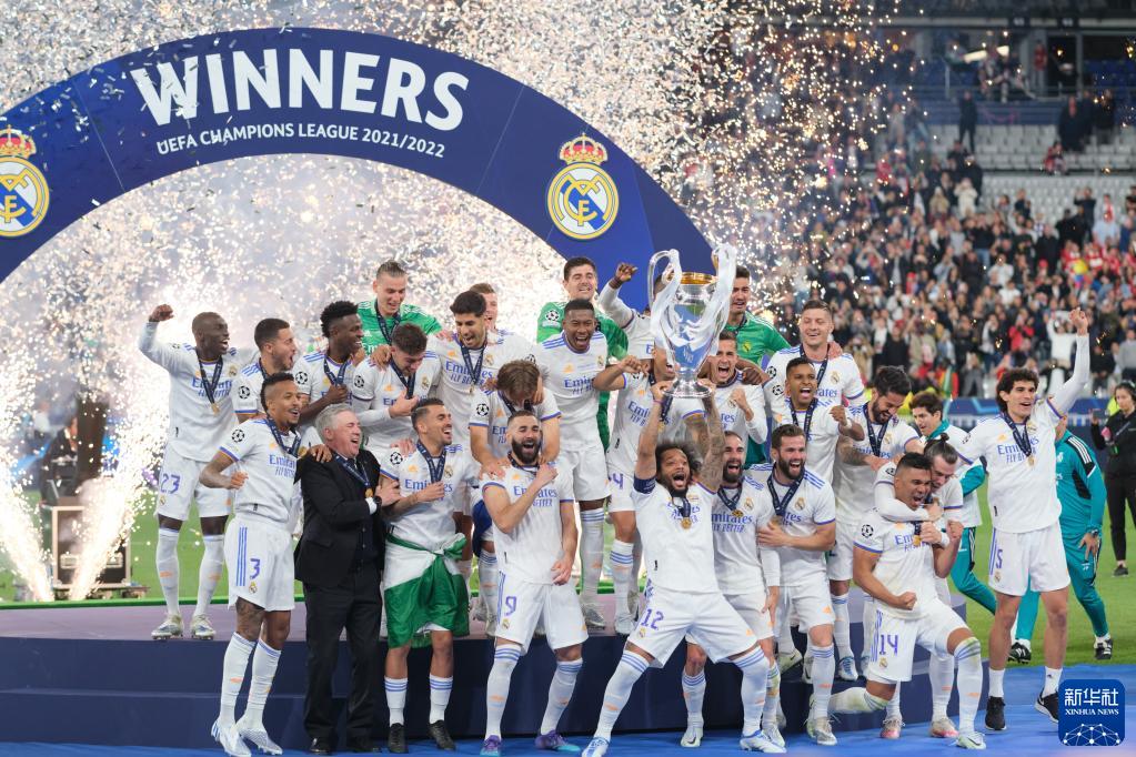 当日,在法国巴黎举行的2021-2022赛季欧洲足球冠军联赛决赛中,西甲皇家马德里队以1比0战胜英超利物浦队,获得了队史第14座欧冠冠军奖杯。