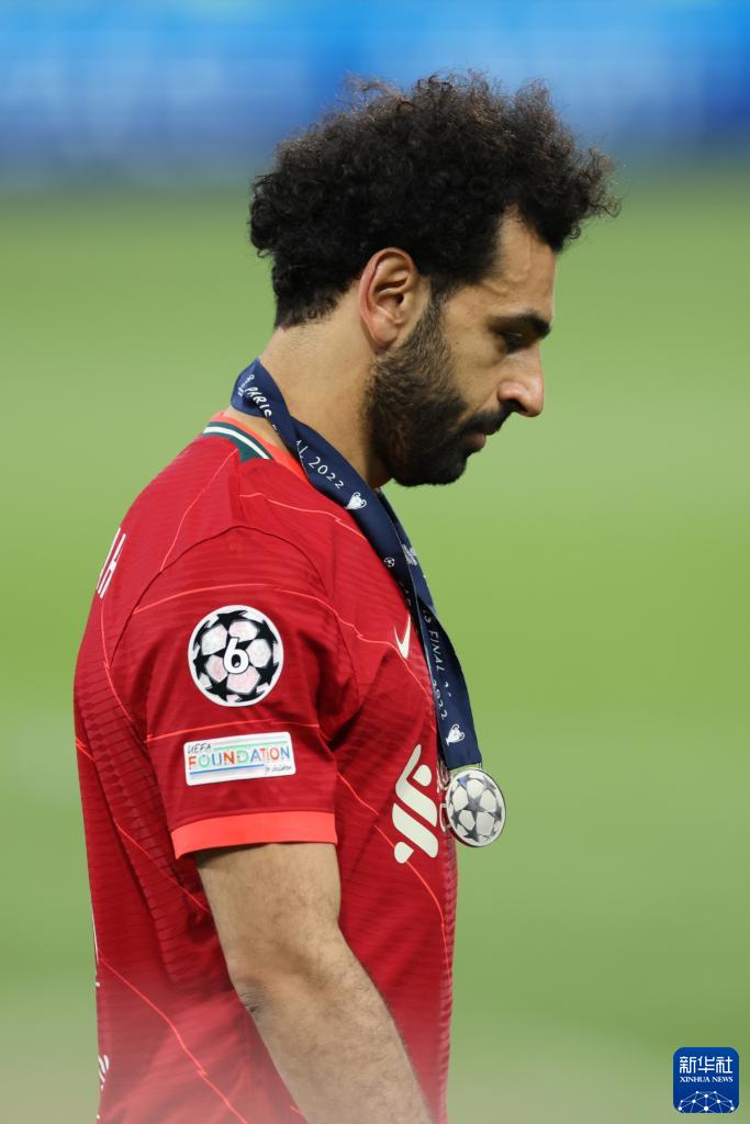 5月28日,利物浦队球员萨拉赫在颁奖仪式上。