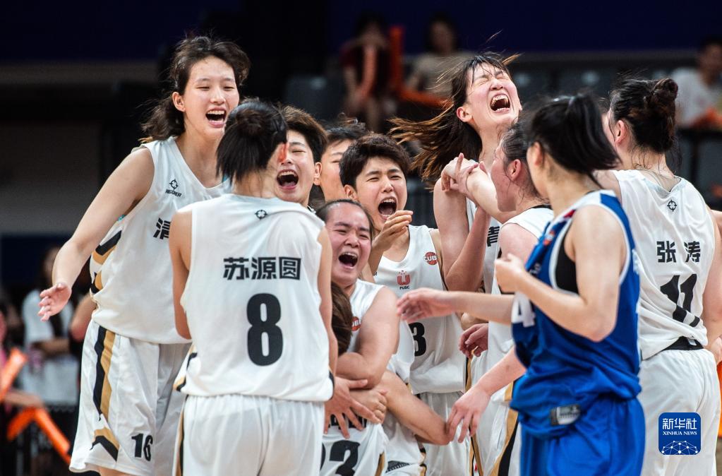 7月21日,清华大学队球员庆祝夺冠。新华社记者 伍志尊 摄