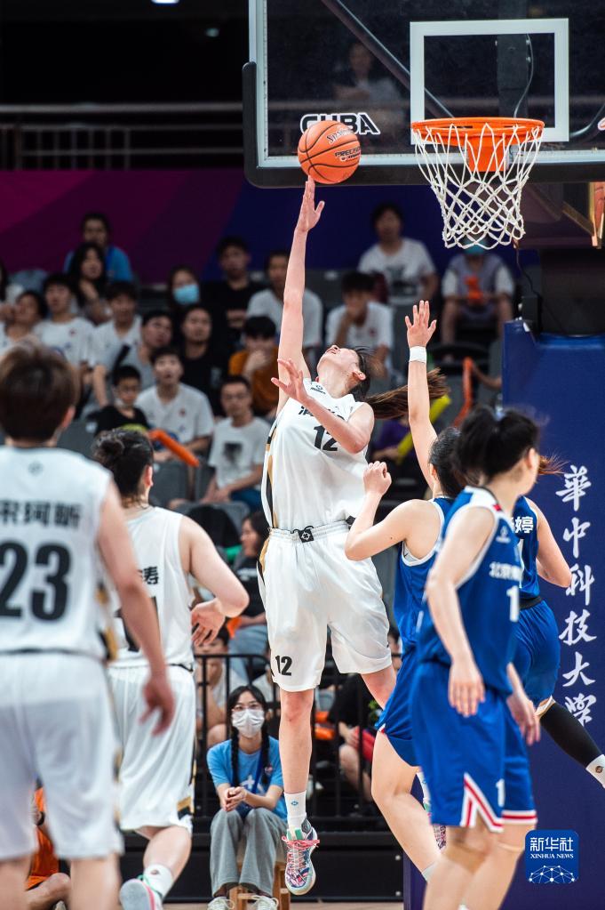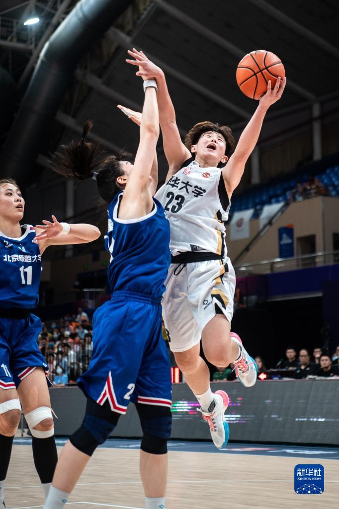 7月21日,清华大学队球员郭目遥(中)在比赛中上篮。新华社记者 伍志尊 摄